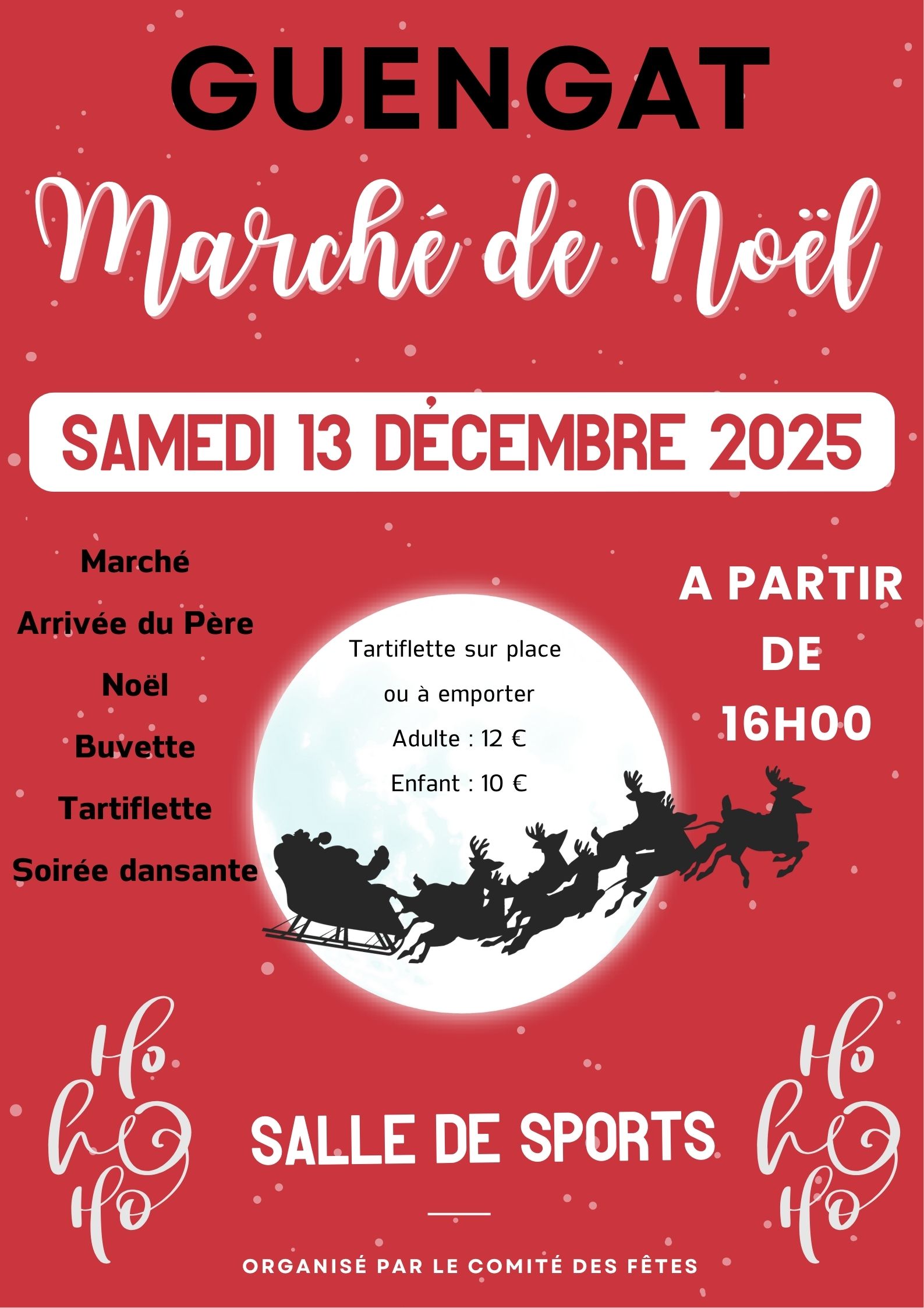 Restauration : tartiflette sur place ou à emporter, possibilité de réserver par mail : comitedesfetesdeguengat@gmail.com ; crêpes, gaufresSoirée dansante à partir de 21h