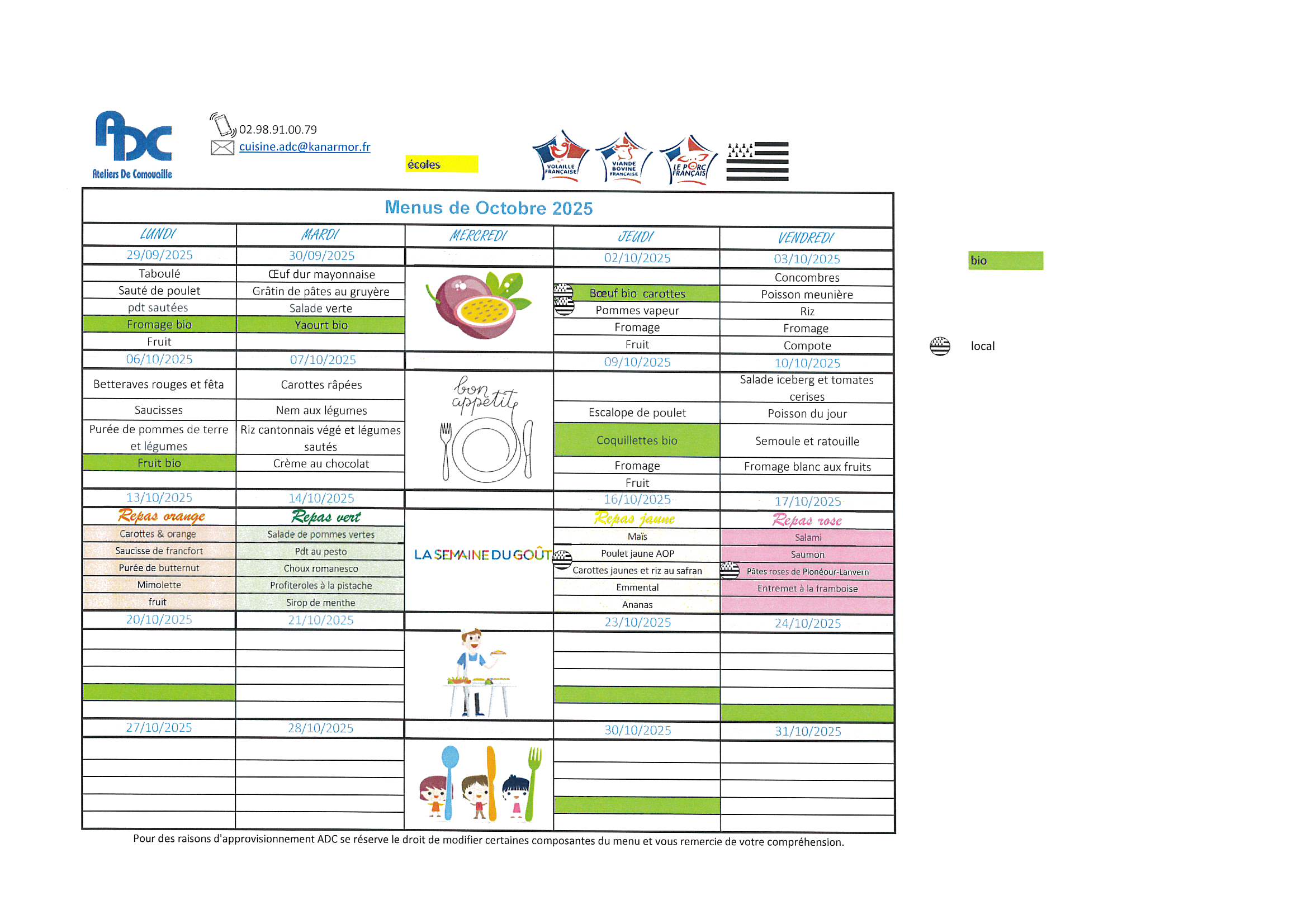 Menus d'octobre